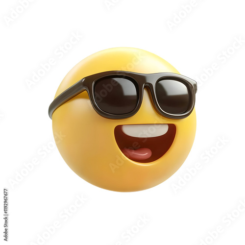 Cheerful and Lively 3D Emoji Face with Sunglasses Expressing Happiness and Positivity