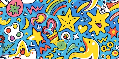 Cheerful and Lively Cartoon Pattern Featuring a Spectrum of Colors and Whimsical Imagery