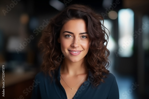 Cheerful, attractive businesswoman with a confident smile. Generative AI. W003