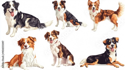 Cheerful Australian Shepherd Dogs in Group Portrait