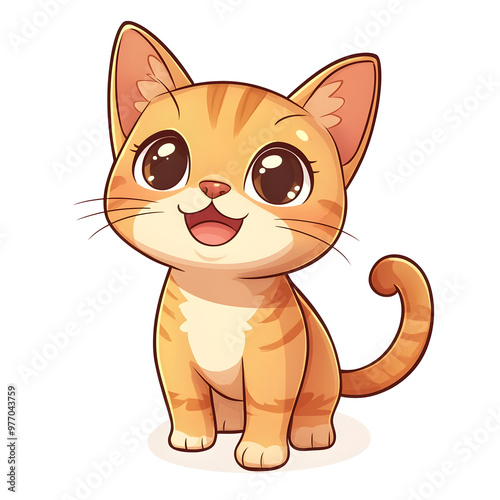 Cheerful Bombay Cat Cartoon Character in Chibi Style with Wagging Tail on Pastel Background