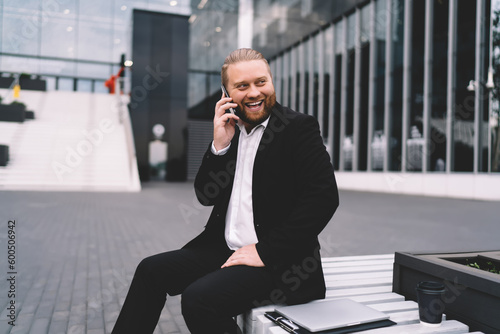 Cheerful businessman talking on smartphone