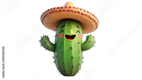 Cheerful cactus character on transparent background! Fun Cinco de Mayo illustration, perfect for greeting cards, party invites, posters, or website decoration. Festive and inviting!