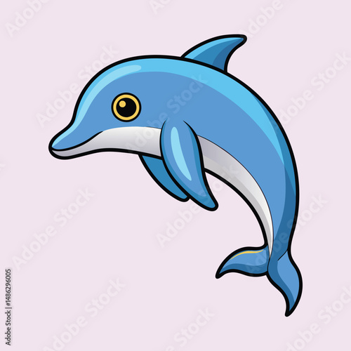 Cheerful cartoon dolphin playfully jumping with a soft purple background