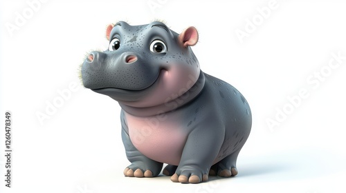 Cheerful Cartoon Hippo with Inviting Smile