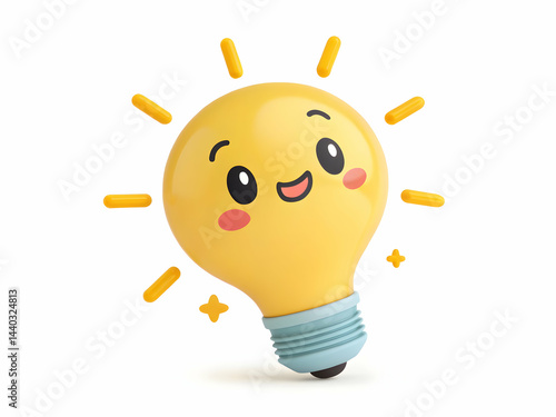 Cheerful Cartoon Light Bulb with Smile and Bright Rays of Light