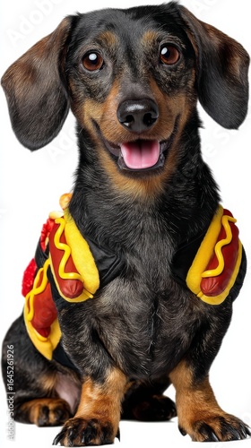 Cheerful Dachshund Dog Dressed as a Hotdog for Halloween Celebrating in Playful Spirit