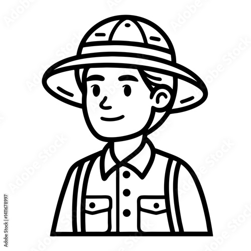 Cheerful Explorer Character in Safari Hat Ideal for Childrens Illustrations and Educational Materials