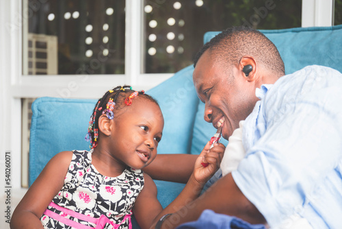Cheerful father and daughter playing in the living room, Happiness family and Father's day concepts