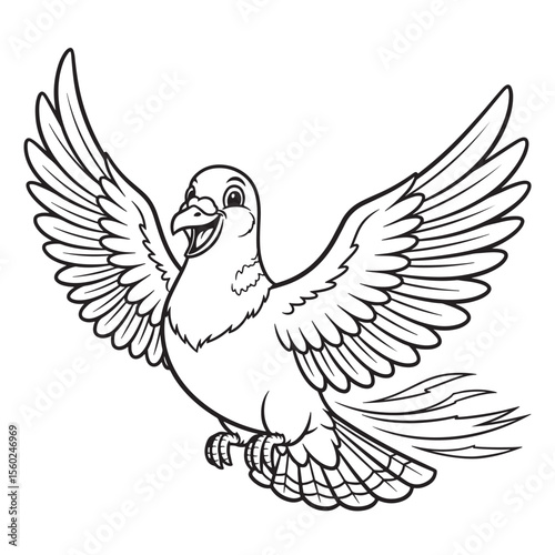 Cheerful Flying Pigeon Illustration Line Art for Coloring Pages and Designs