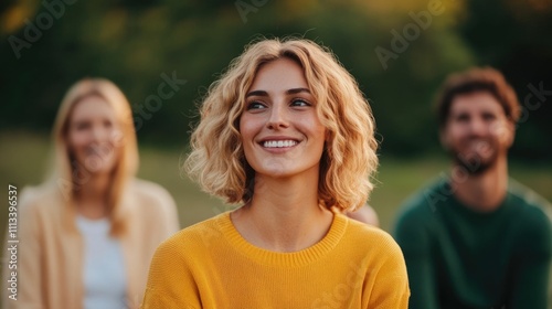 Cheerful Friends Engaging in Friendly Conversation and Outdoor Group Bonding Activities in a Natural Green Field Setting