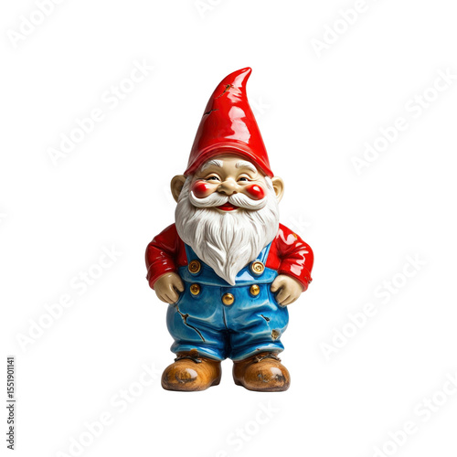 Cheerful Garden Gnome Figurine - Red Hat and Blue Overalls