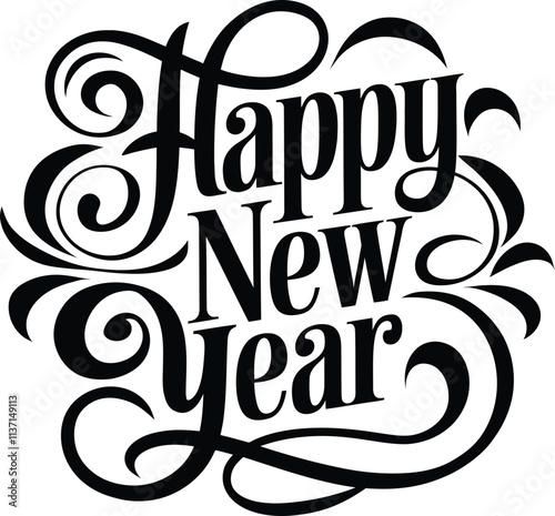 Cheerful "Happy New Year" lettering against a white backdrop, conveying excitement for the upcoming year.