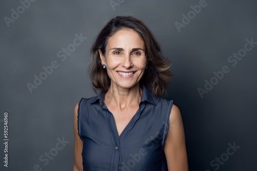 Cheerful Mature Woman Smiling Against Grey Wall. Photo generative AI