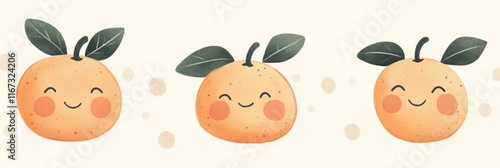 Cheerful oranges with smiling faces for a joyful and playful spring design