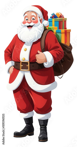 Cheerful Santa Claus Carrying a Sack of Gifts
