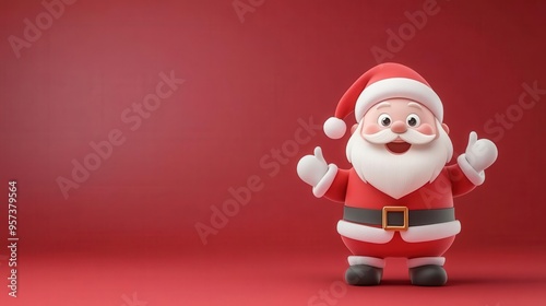 Cheerful Santa Claus figure in a vibrant red background, perfect for festive holiday themes and cheerful decorations.