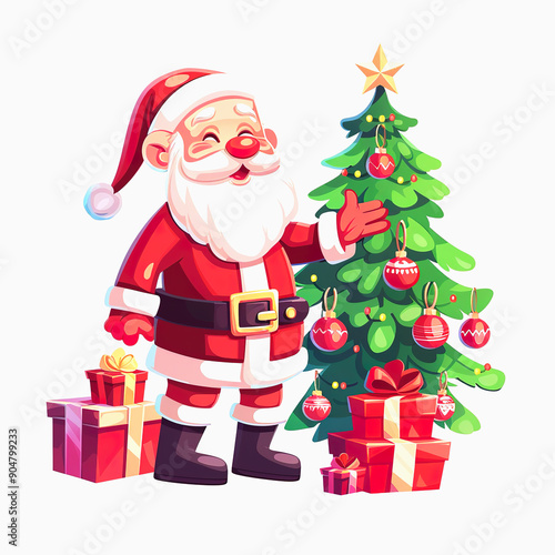 Cheerful Santa Claus Standing Near a Decorated Christmas Tree