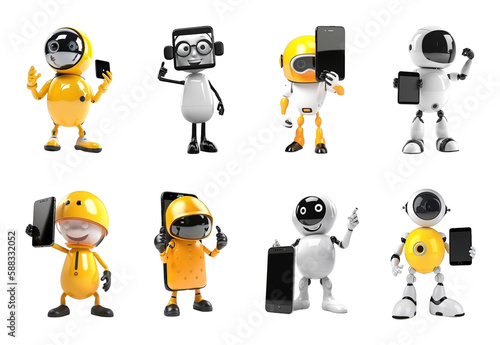Cheerful Smartphone Mascot Characters Collection on Transparent Background Created with Generative AI and Other Techniques