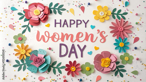 Cheerful Women's Day card with colorful paper flowers