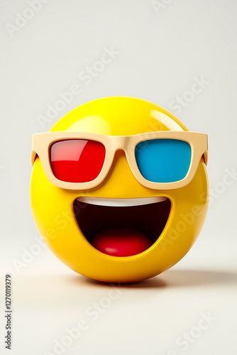 cheerful yellow emoticon with 3d glasses expresses pure joy
