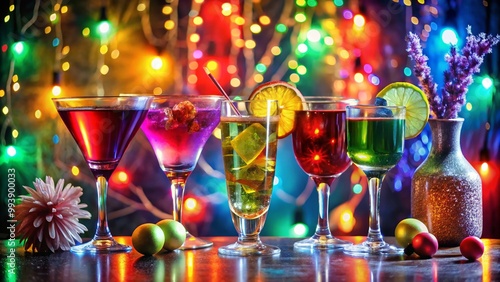 Cheers Background with Colorful Drinks and Festive Decorations for Celebrations and Events