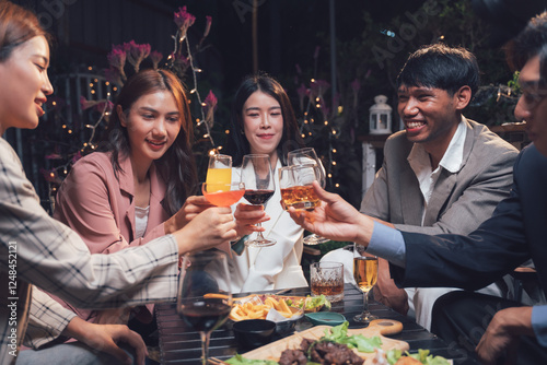 Cheers to Good Times: A group of friends raise their glasses in a toast, their laughter and camaraderie radiating warmth and joy. The scene is intimate and vibrant.