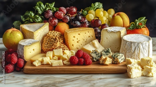 Cheese and Fruit Platter Assortment with Wooden Tray.
