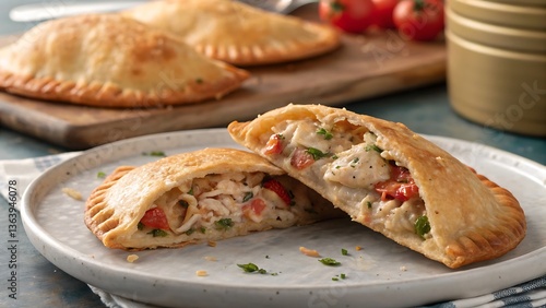 Cheese and meat empanada, crispy on the outside, filled with seasoned meat and melted cheese for a savory treat. / Empanada de queso y carne, crujiente por fuera, con un delicioso relleno de carne