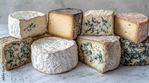 Cheese assortment. Different types on a marble surface