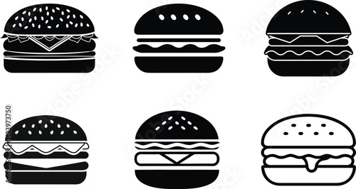 Cheese burger Icons Set – Black Fast Food Silhouette Glyph Vector Illustration
