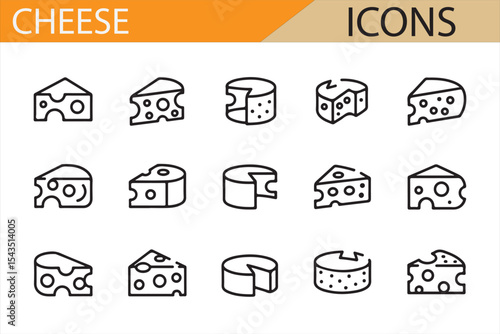 Cheese Icons Featuring Different Shapes of Cheese for Food and Dairy Representations