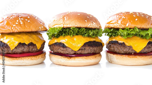 Cheesy Burgers With Fresh Lettuce on White Generative AI