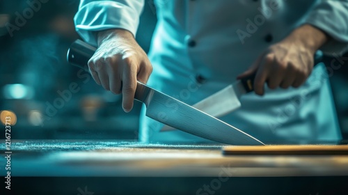 Chef Demonstrating Knife Skills in Professional Kitchen