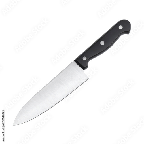 Chef Knife Isolated on Transparent Background with Black Handle and Silver Blade