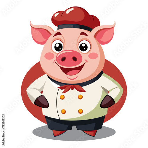 Chef Pig: Illustrated Mascot of Culinary Expertise in the Kitchen