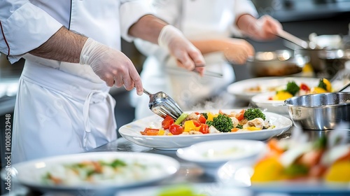 Chef Plating a Dish of Steamed Vegetables