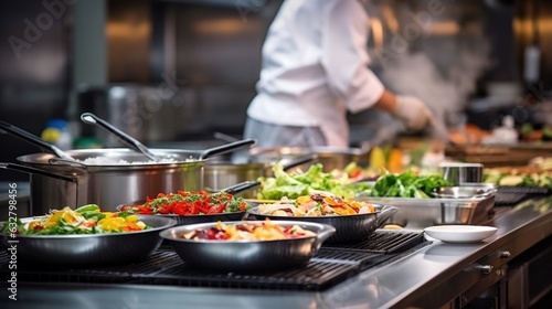 chef preparing a gourmet meal in a bustling restaurant kitchen generative ai