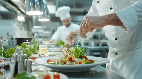 Chef Preparing Delicious Salad in Commercial Kitchen