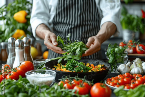 Chef Preparing Fresh Vegetable Dish in Morning Light