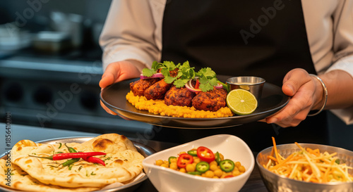 Chef Serving Authentic Indian Chicken Tikka Platter