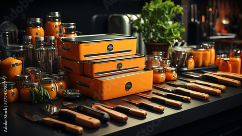 Chef's Culinary Tools: Close-up of knives and utensils on the table.