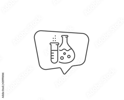 Chemistry flask line icon. Chat bubble design. Laboratory tube sign. Analysis lab symbol. Outline concept. Thin line chemistry flask icon. Vector
