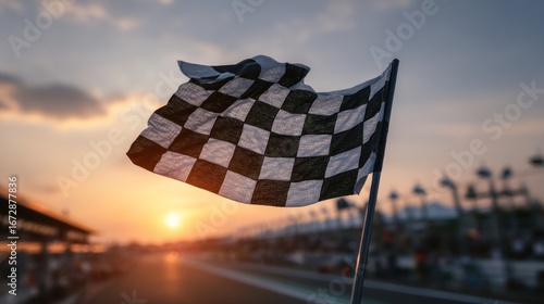 Chequered flag at sunset