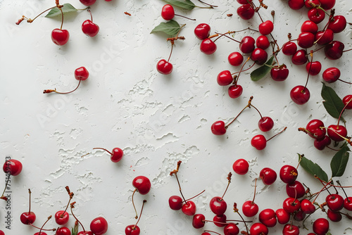 Cherries on White Background - Fresh Red Fruit