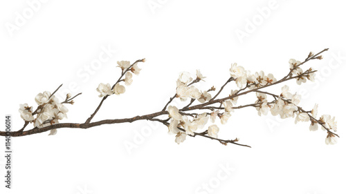 Cherry blossom branch contrasts beautifully against a vibrant blue background, highlighting nature's delicate elegance and artistry