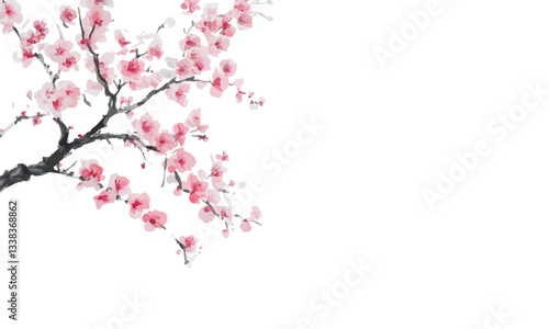 Cherry blossom tree, pink flowers on a white background