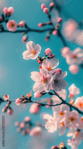 Cherry Blossoms in Bloom: A symphony of pink blossoms against a vibrant blue sky, capturing the ephemeral beauty of spring, phone wallpaper