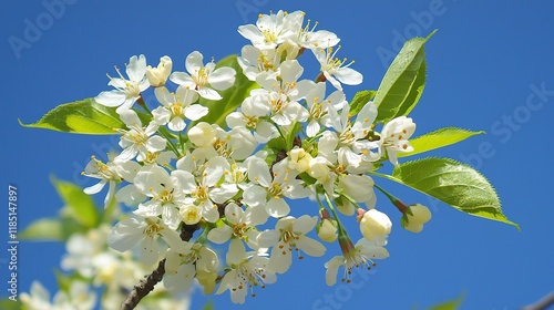 Cherry blossoms in full bloom against a clear blue sky on a vibrant spring day