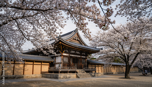 Cherry Blossoms with Traditional Japanese Temple — Cultural Heritage Landscape